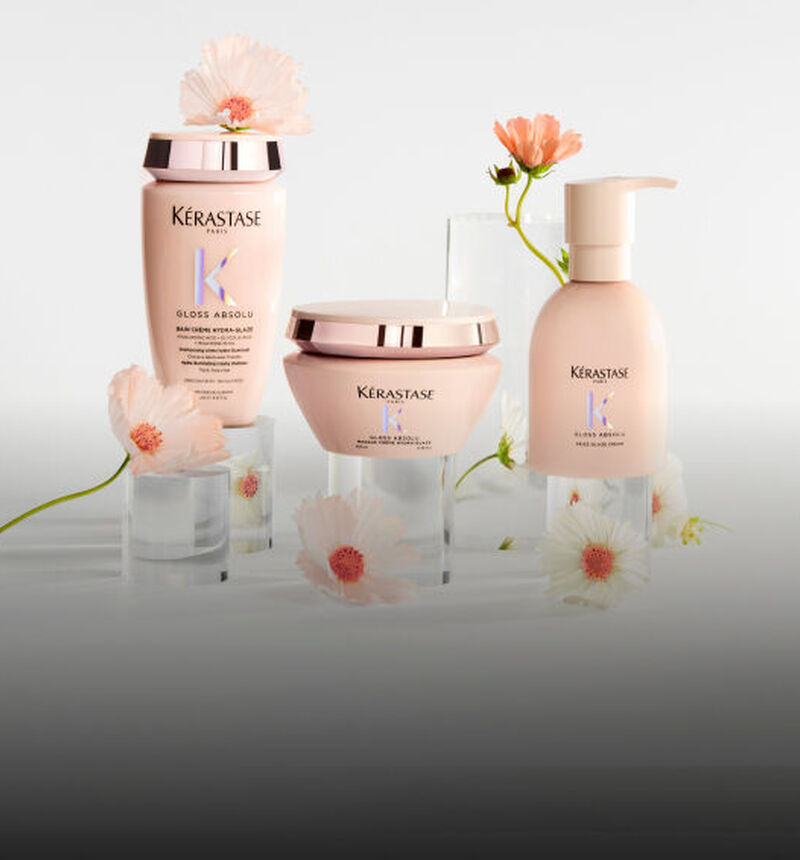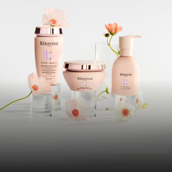 Découvrez la routine Gloss Absolu Essentiels, idéal pour des cheveux subtilement brillants. Contient un shampooing et une huile.